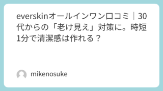 スキンケアeverskinオールインワン口コミ|30代からの「老け見え」対策に。時短1分で清潔感は作れる? 「最近、疲れてる?」と言わせない!エバースキンで始める大人のエイジングケア。1本5役の時短ケアで、乾燥小じわやハリ不足にアプローチし、若々しくエネルギッシュな印象へ。実際に肌が変わった30代・40代のリアルな口コミと、未来の肌への投資価値を徹底解説! 2025.11.11スキンケア