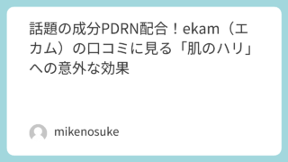 スキンケア話題の成分PDRN配合!ekam(エカム)の口コミに見る「肌のハリ」への意外な効果 話題の整肌成分PDRN配合で注目のekam(エカム)アドバンスドジェル。美容医療でも話題の成分が肌のハリにどう働くのか、実際の口コミから徹底検証!単なる保湿に留まらない、成分設計の裏側やメリット・デメリットを詳しく解説します。攻めの時短ケアの正体とは? 2025.12.25スキンケア
